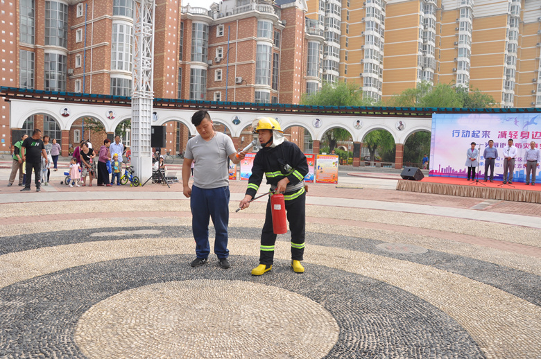上午9时40分,小广场内点燃演练油锅,锅内燃起大火,并冒出滚滚浓烟,裕龙五区项目部经理张卫民现场拨打了消防站应急报警电话,随后微型消防站火警铃声响起,物业公司立即启动了火灾应急处置预案,6名义务消防员驾驶巡逻车迅速赶到现场,进行现场灭火,整个灭火过程做到了快速、安全、有序,消防演习取得圆满成功。随后物业公司维修人员还现场演示了防汛扛沙袋筑堤坝,连接发电机抽排小区积水等内容。活动后由街道及大龙物业公司领导向居民代表发放防灾减灾宣传册共计850份。